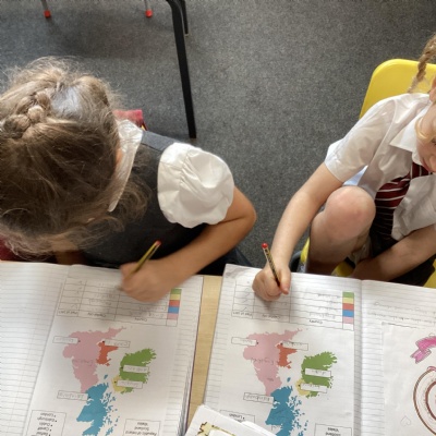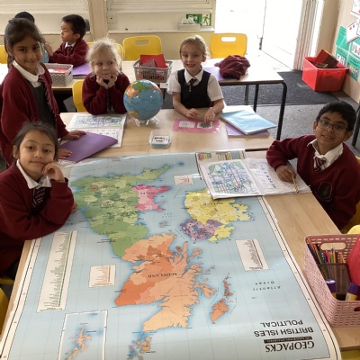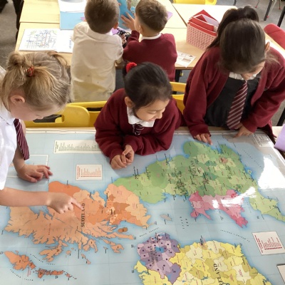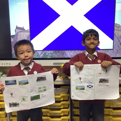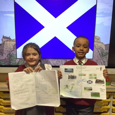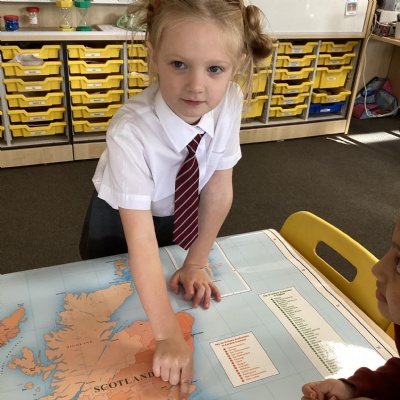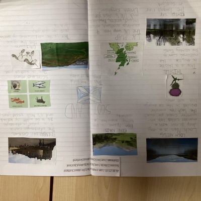 The children's chosen country to look at was Scotland. The baked shortbread, learnt about key geographical features of Scotland, including the countryside, towns, mountains and lakes. They learnt about the Lock Ness monster and in English, created a wanted poster. They did some map work, identifying what a key is and looked at finding some of the historical landmarks using a grid reference and in Art they learnt about the artist Steven Brown and created their own version of his paintings.