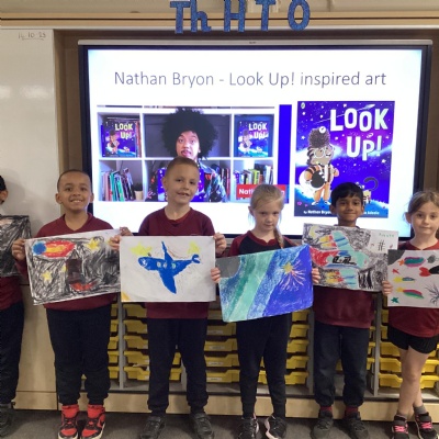 This week, across school we covered Black History Month. In Year 2 we chose a book called "Look Up" by Nathan Bryon. The children found out that Nathan in an influential black British author, actor and writer. He has received BAFTA nominations for his screenwriting and the Waterstones award for his book Look UP. The children were inspired by the story because it encouraged them to come off their devices and look up at the stars, dream big and believe that one day they can do extraordinary things. The children painted some amazing painting about what they would see if they looked up into the sky and delivered their findings in assembly.