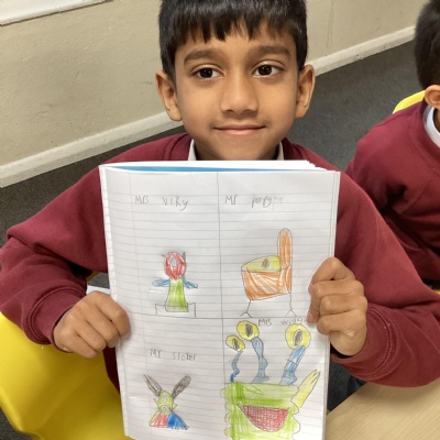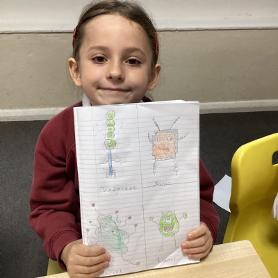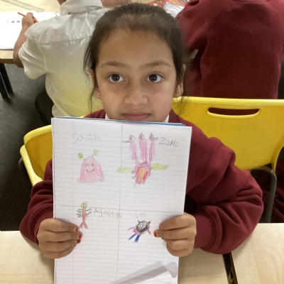 In English, the children created alien characters for their independent write next week and created a fact file about their favourite alien.