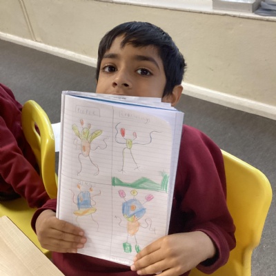 They wrote their independent write this week in English, a day in the life of their chosen alien using descriptive language. In Maths we continued deepening our understanding on adding and subtracting 10 and in grammar we learnt abut verbs and wrote sentences including a noun and a verbs.