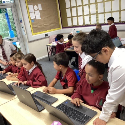 In computing, we linked up with Year 4 who did a wonderful job explaining how to code using the Scratch programme.